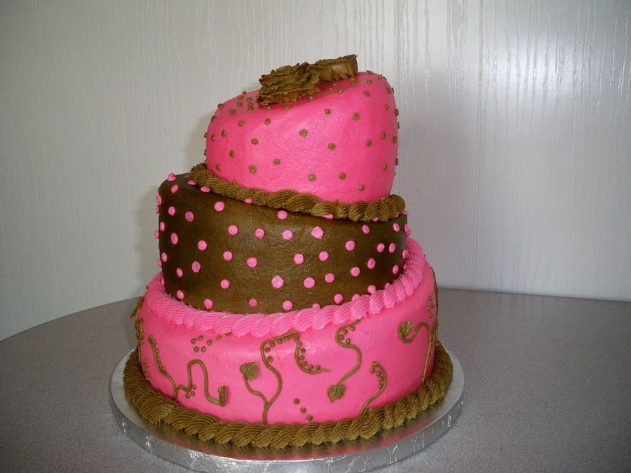 6-8-10in. round. Butter pecan with b/c icing. Was not as hard as I thought it would be. Look forward to doing another one soon!