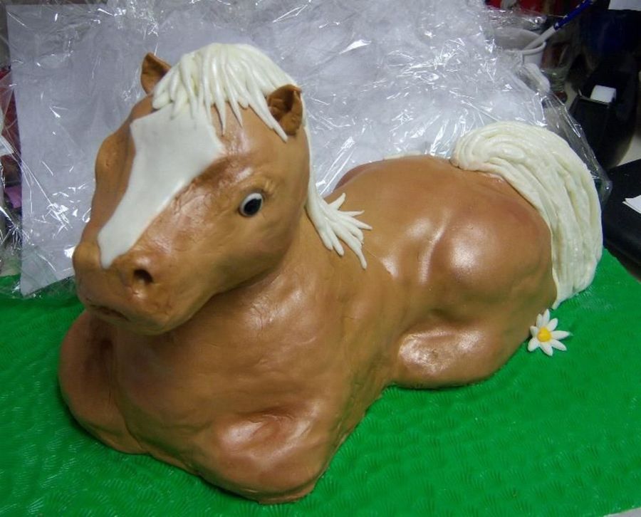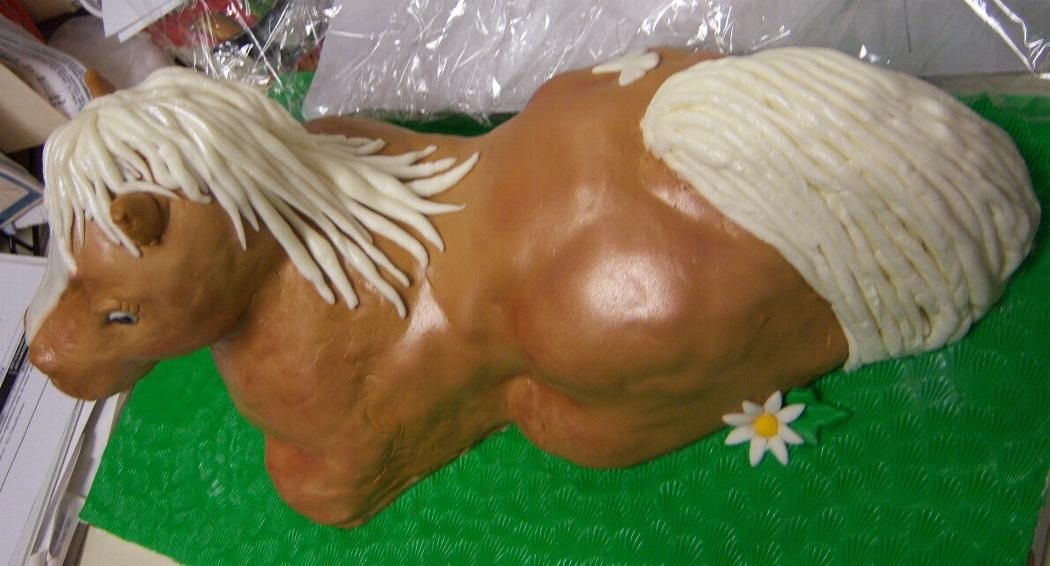 3D horse for am 8 yr old's b-day. MM fondant over almond poundcake.