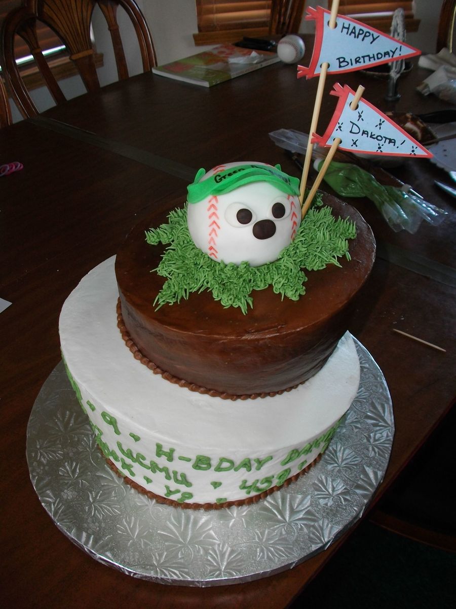 My first topsy turvy cake! All buttercream except the basseball. The bottom has texting messages even at the party I couldnt remember what they stood for