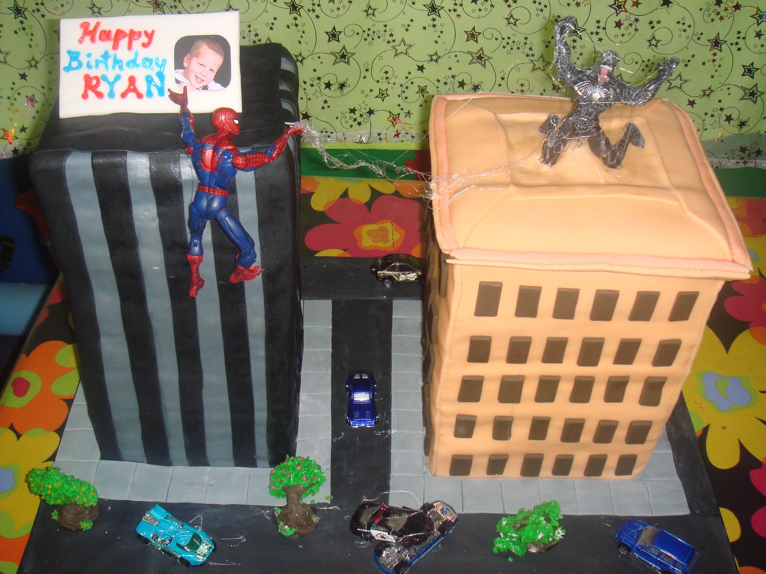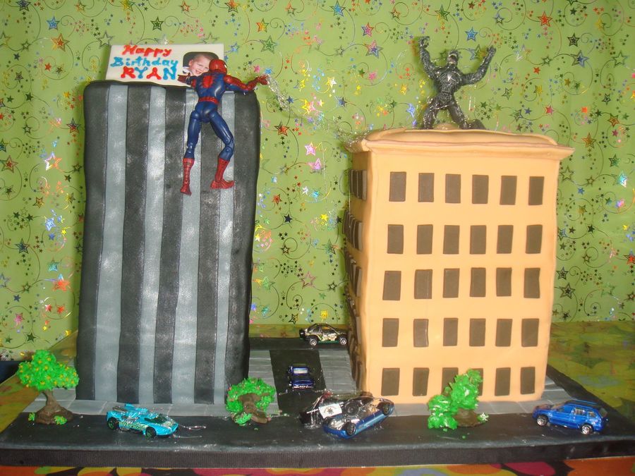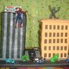 Buildings are all cake. Cakes buildings sizes are 15" and 12" high. The loved it at the party, it was big hit!