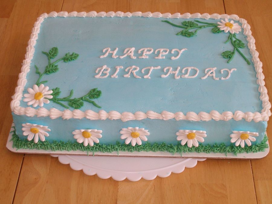 Royal icing daisies decorate this cake. The bottom border was done with the multiple opening tip to resemble grass.