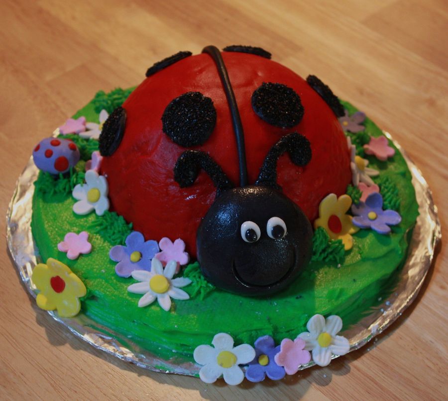 This cake was made using the Wilton Ball Cake Pan. Ladybug is covered in fondant and the rest is gumpaste accents and flowers. This cake was inspired from one of Debbie Brown's books.