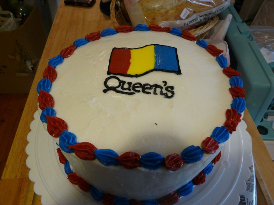 Made this cake for my friend who graduated university and is moving away. Marble boxed caked mix. FBCT for flag and lettering. Writing was put on after I took the photo.