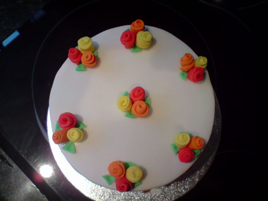 Vanilla Sponge, suagrpaste covering and small rosebuds