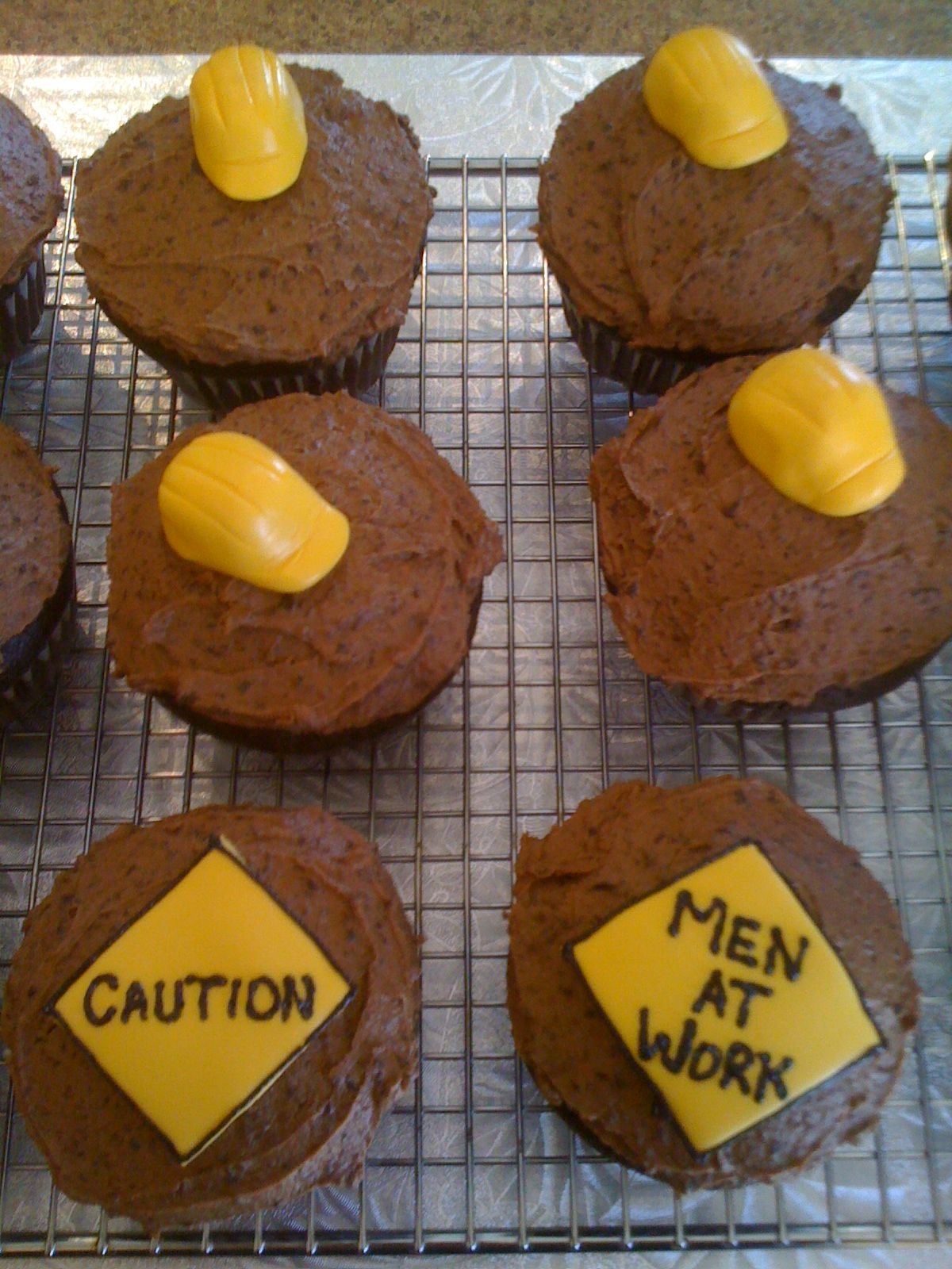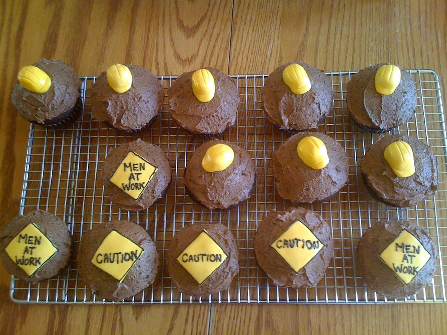 I couldn't resist making these for the guys re-doing the water lines in our front street. I added chopped chocolate to the buttercream icing to give it more of a dirt look. Signs and hard hats are MM fondant. I'm hoping they'll remember the cupcakes when they're digging close to my flower beds!