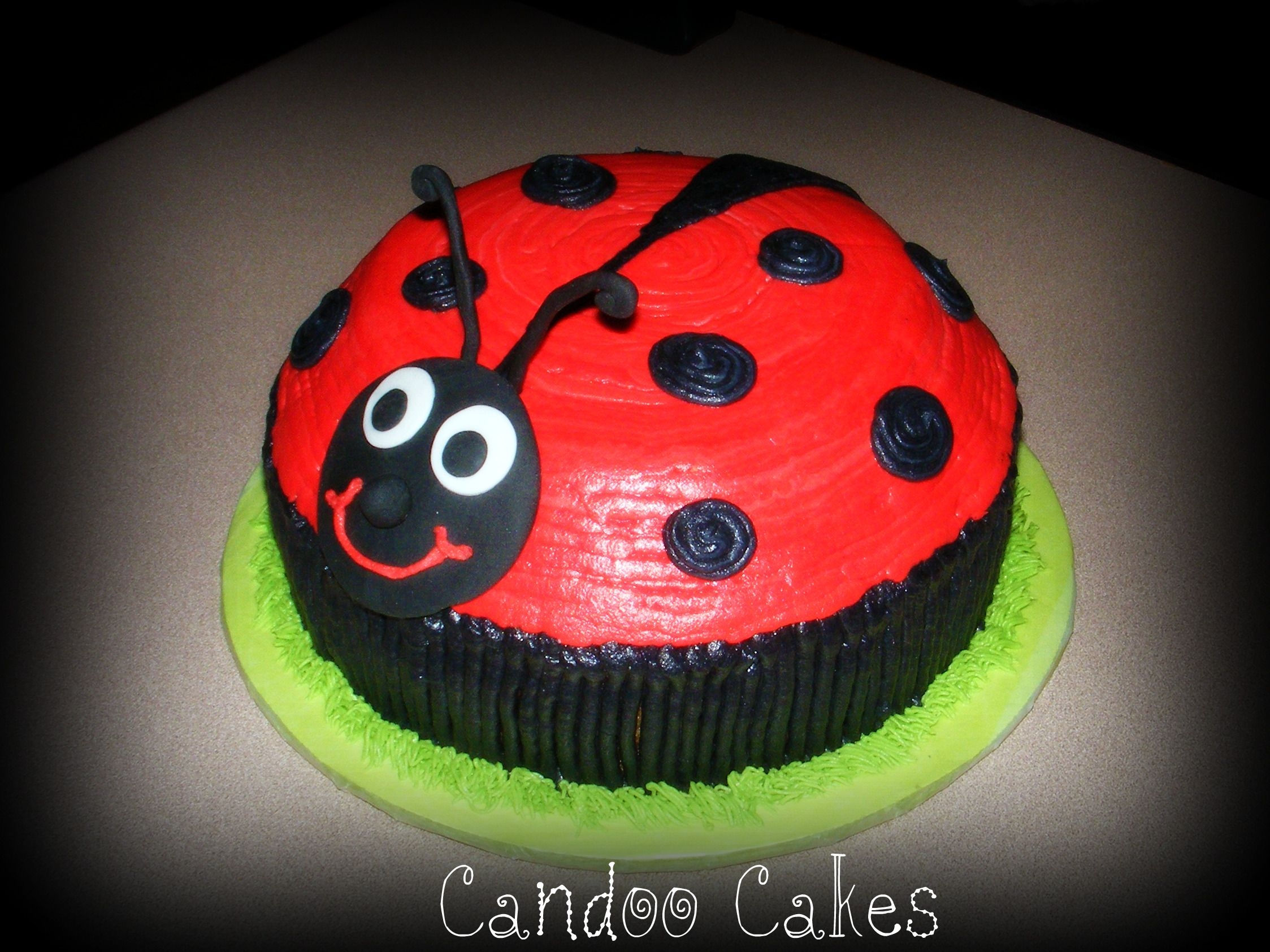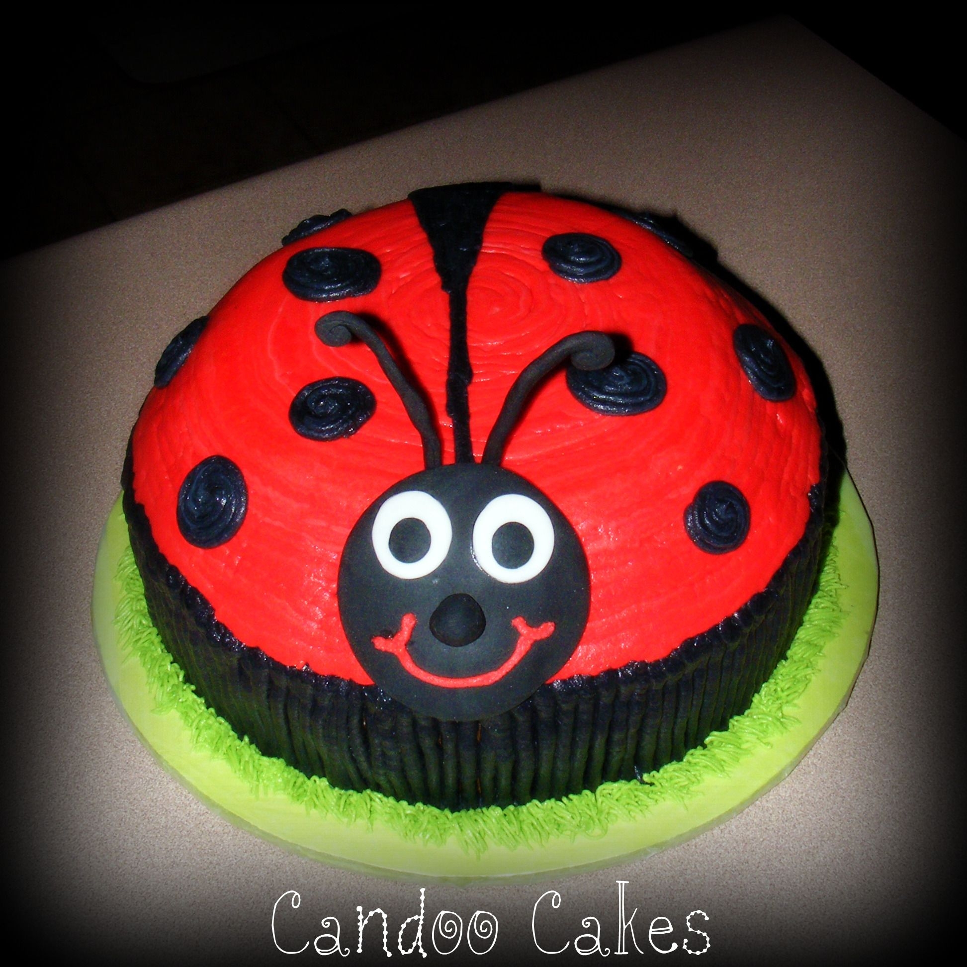10" yellow cake with BC icing. Head and anteana fondant, everything else BC.