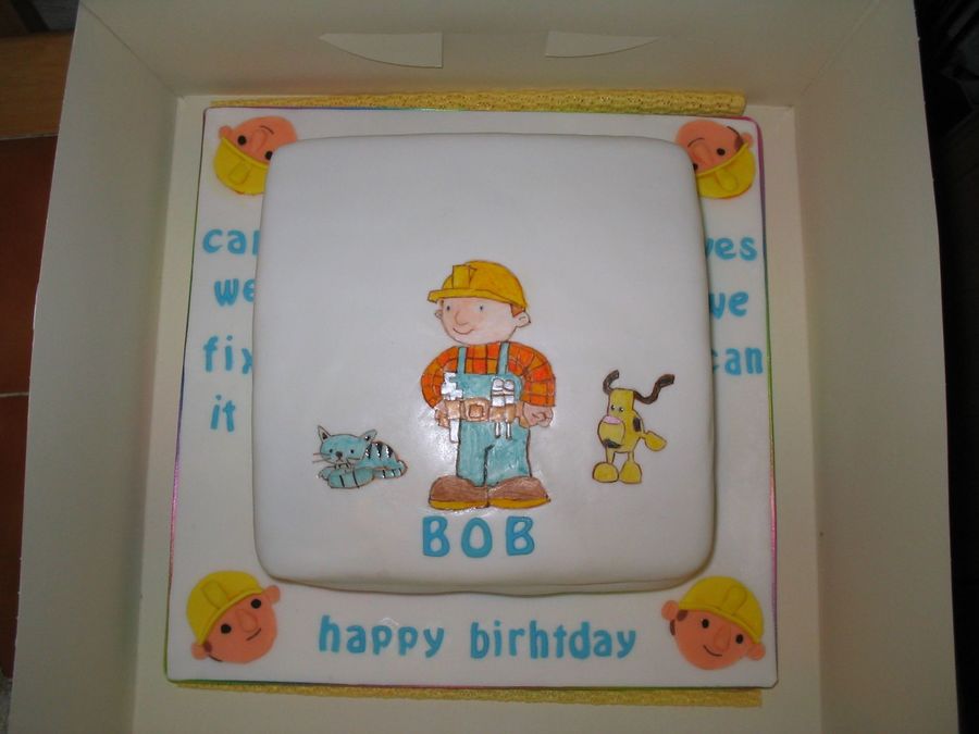 This was done for a lttle boy who never missed an episode of Bob the builder,so I hand painted Bob and his friends on to the cake.