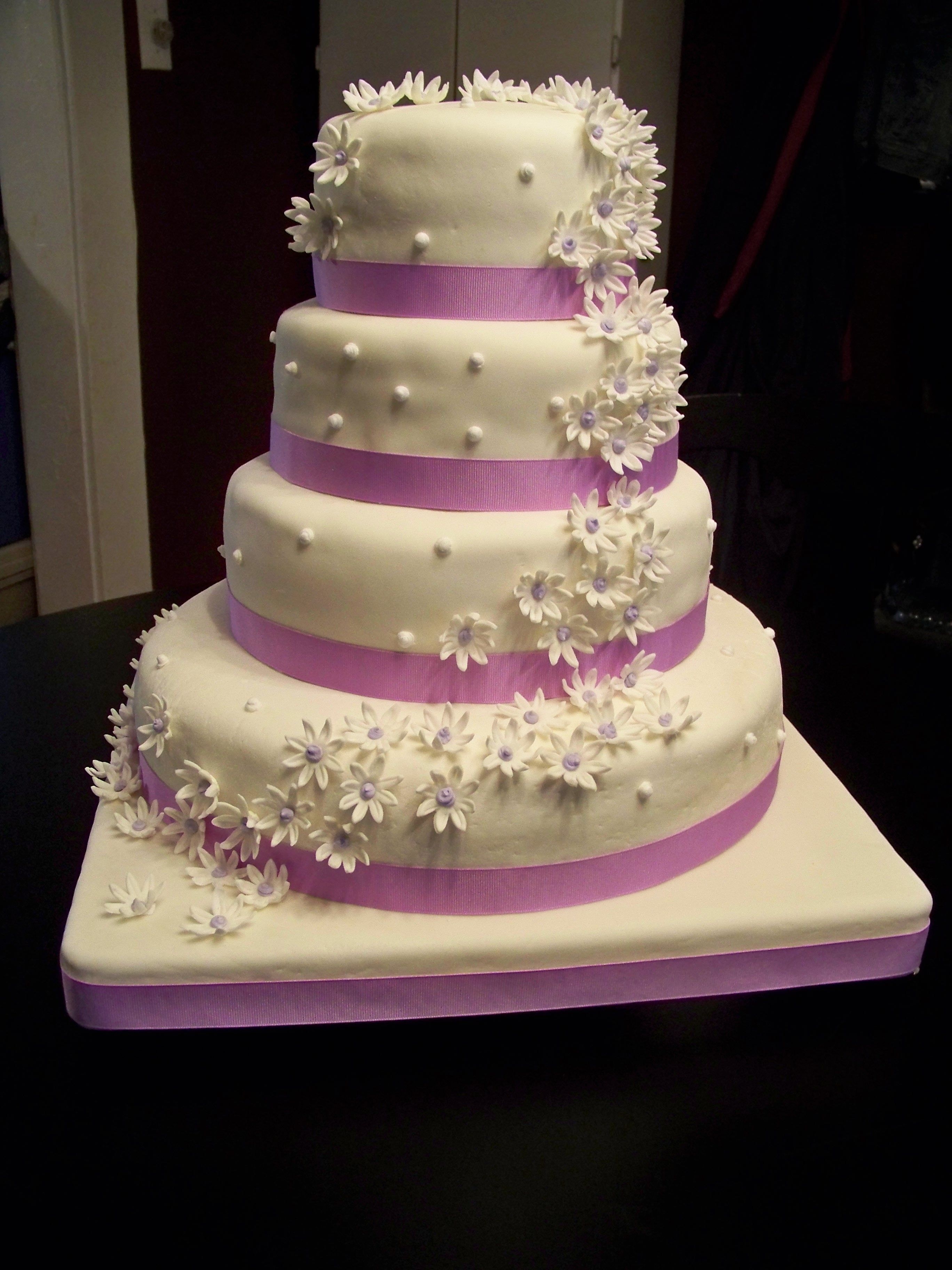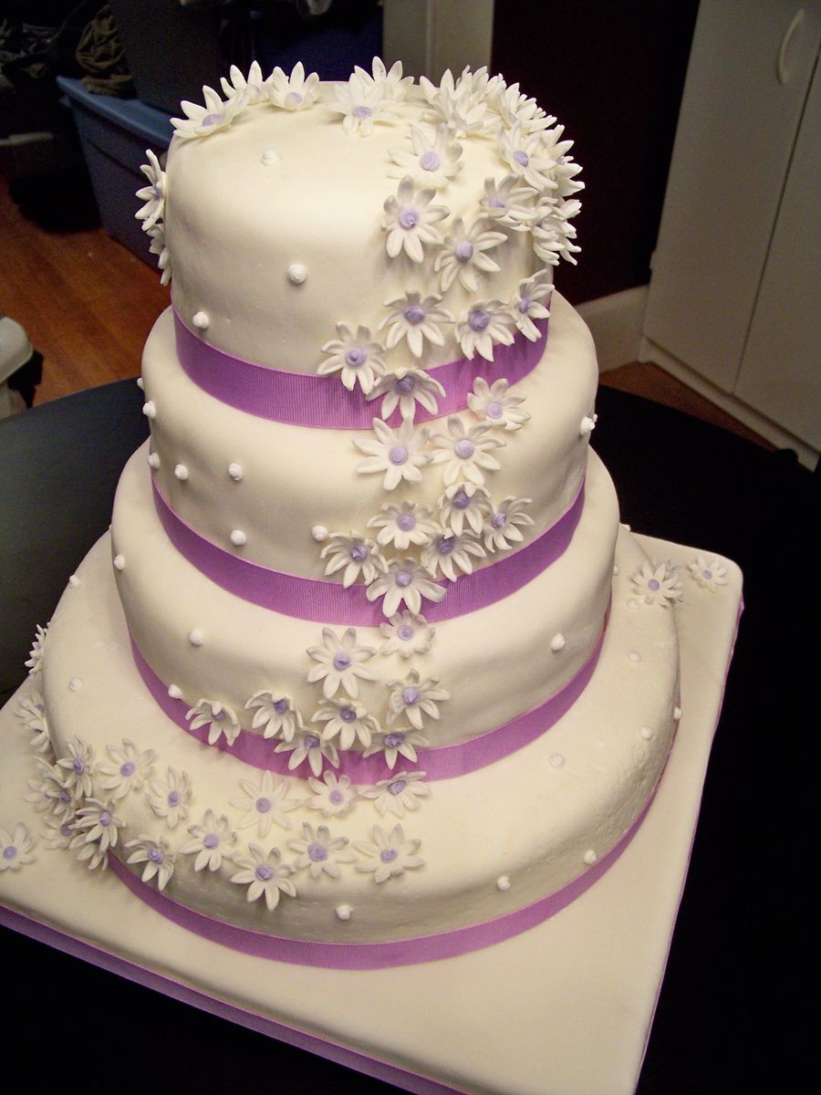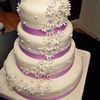 My first wedding cake. Whew! Thanks everyone for your words of wisdom and great inspiring photos. Thank you xstitcher who answered a desperate post in the middle of the night. My MMF is still a little more bumpy than I would like, but there's always the next cake. Most of all thank you to abbietabbie and your picture on Flicker. The couple saw your cake and wanted their own purple version. I still like yours the best, but I gave it my best effort. http://www.flickr.com/photos/abbietabbie/809118300/in/set-72057594123448395/