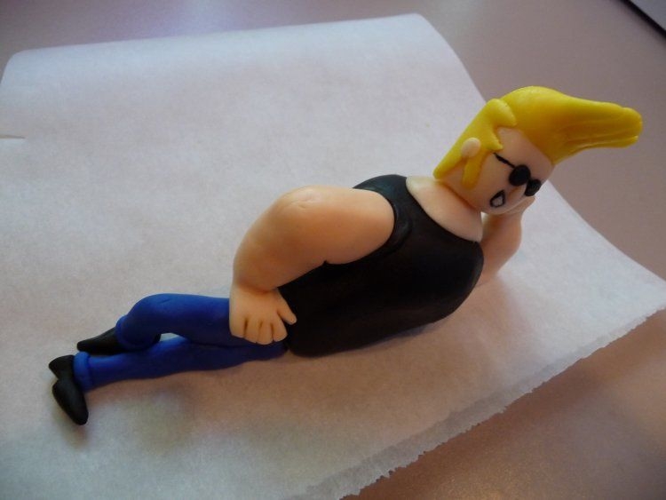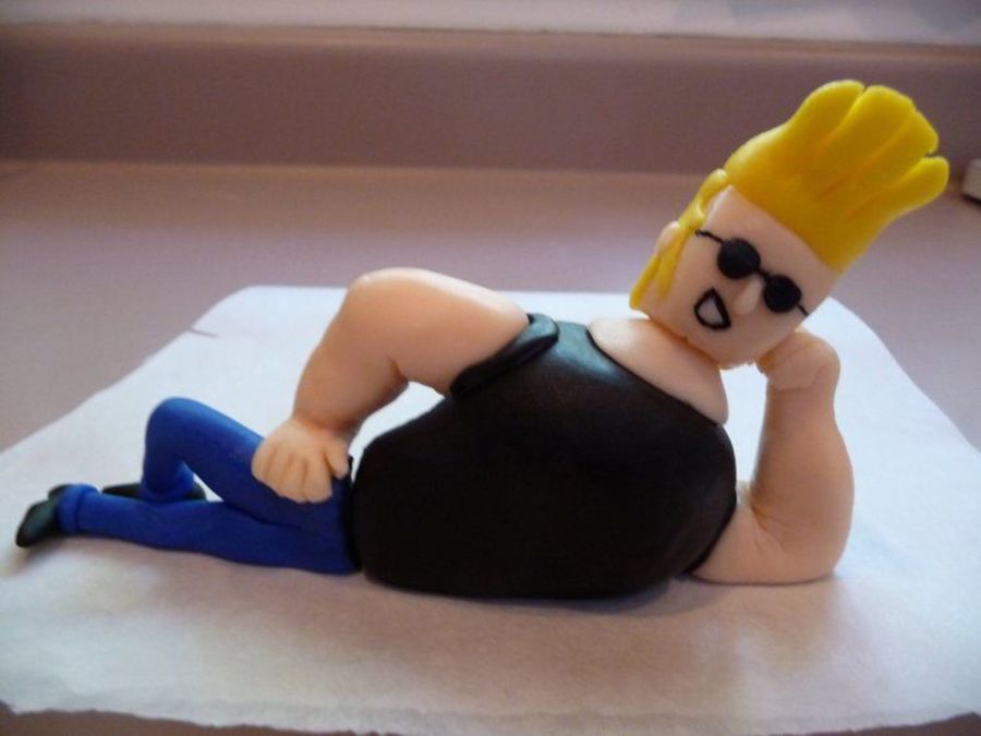 Made this cartoon character to be put on the top of a heart cake (to be made later) for my sister-in-laws birthday cake. She is a BIG Johnny Bravo fan! Made out of MMF.