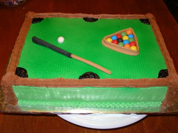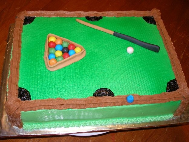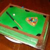 this is my 1st try at making a pool table cake. Buttercream icing, rack, balls & pool stick I made out of fondant