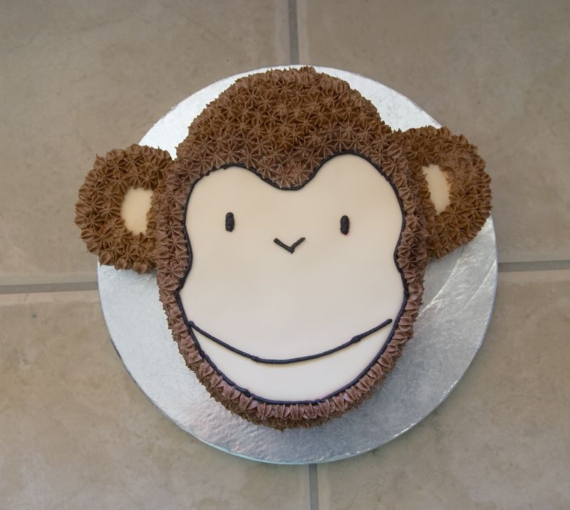 I made this cake for my son's 1st Birthday party. As usual, I am not truly happy with the way it came out but it's not to bad either. I wish I had added piping gel to the black buttercream so the icing didn't break while piping. I also wish I would have gotten the monkey face's straight and symetrical! It was a hit though, an it was DELICIOUS (all from scratch pina colada).