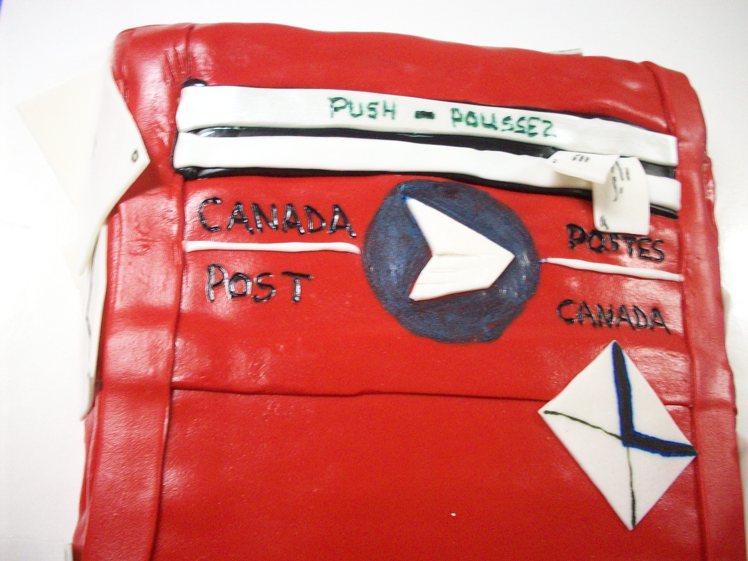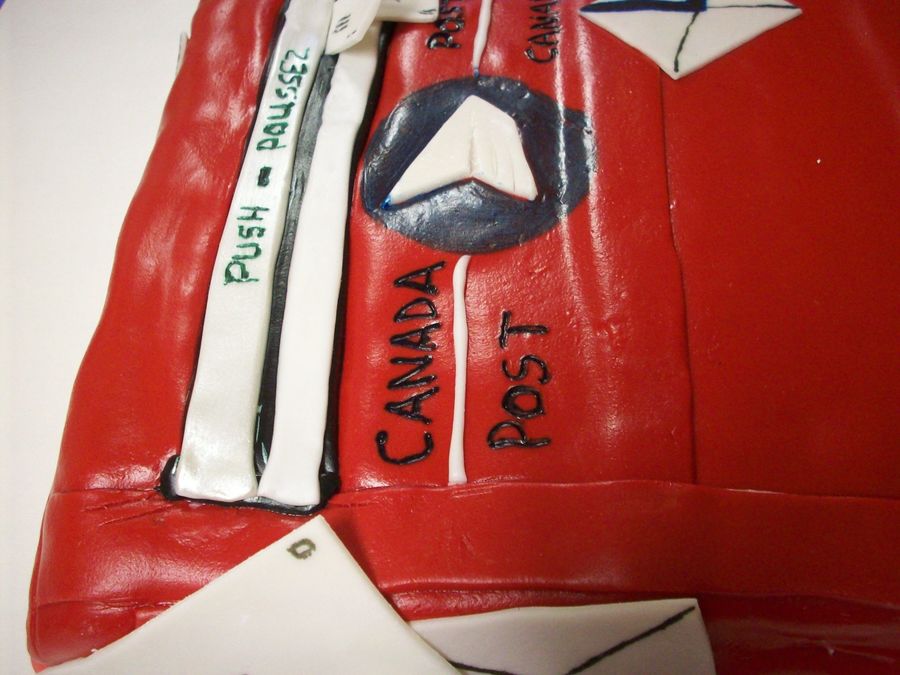 Mailbox cake made for a retirement party! Was chocolate cake BC icing and fondant and gum paste covering. Was a lot of fun. Was about 60 serving size.