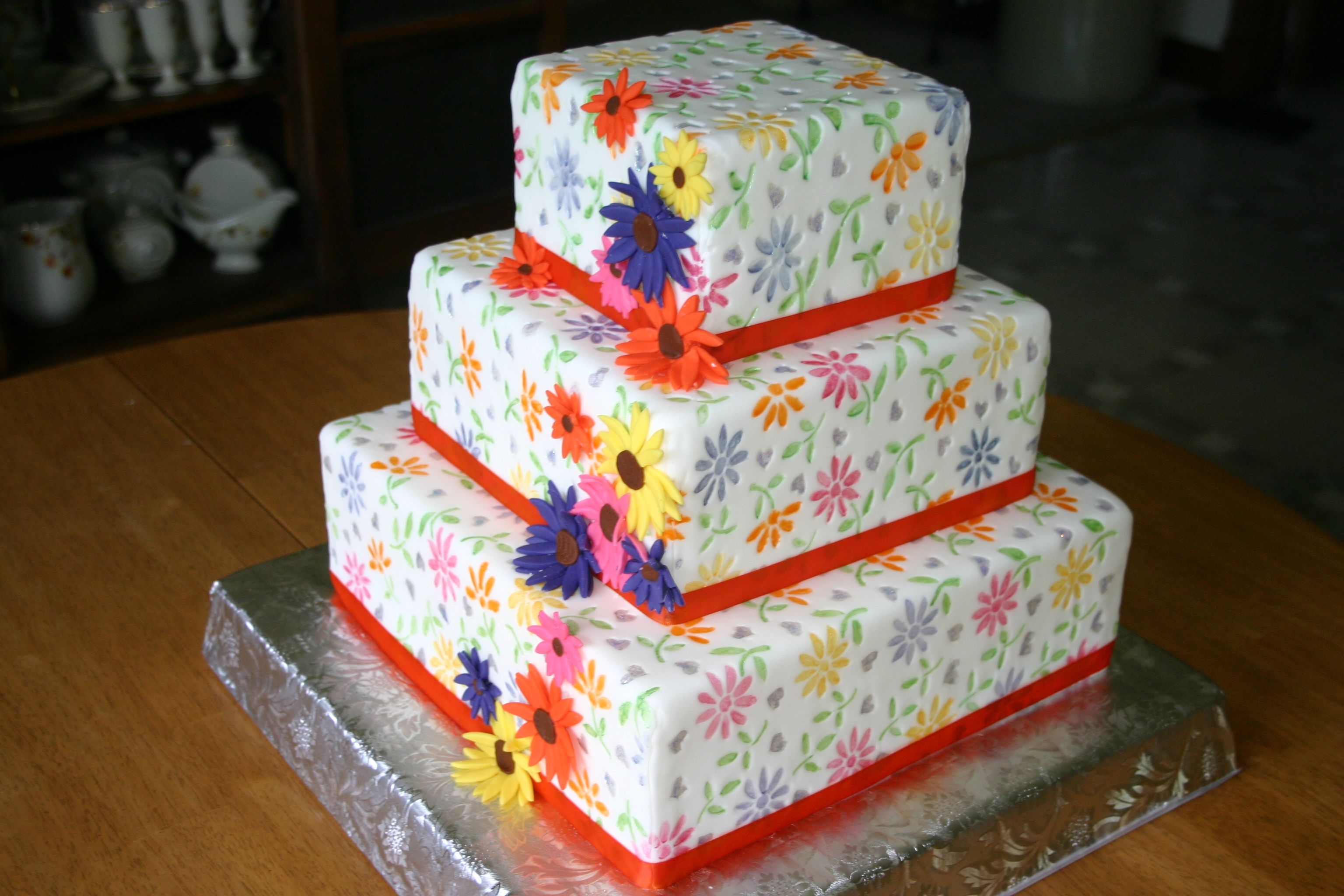 This is a dummy cake for my daughter. It will appear in her senior pictures in place of a sports theme. She wishes to attend culinary school, so we are doing a baking theme! Thanks to minty56 for the daisy inspiration!