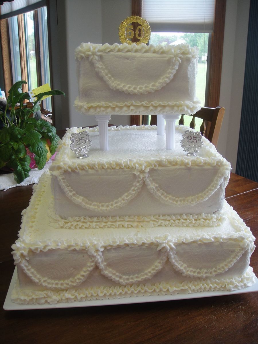 1959 Replica wedding cake! What an honor to do for them! All white cake, Lemon filling on 1, raspberry filling on another, and just buttercream on top. So Fun! Thanks for looking!