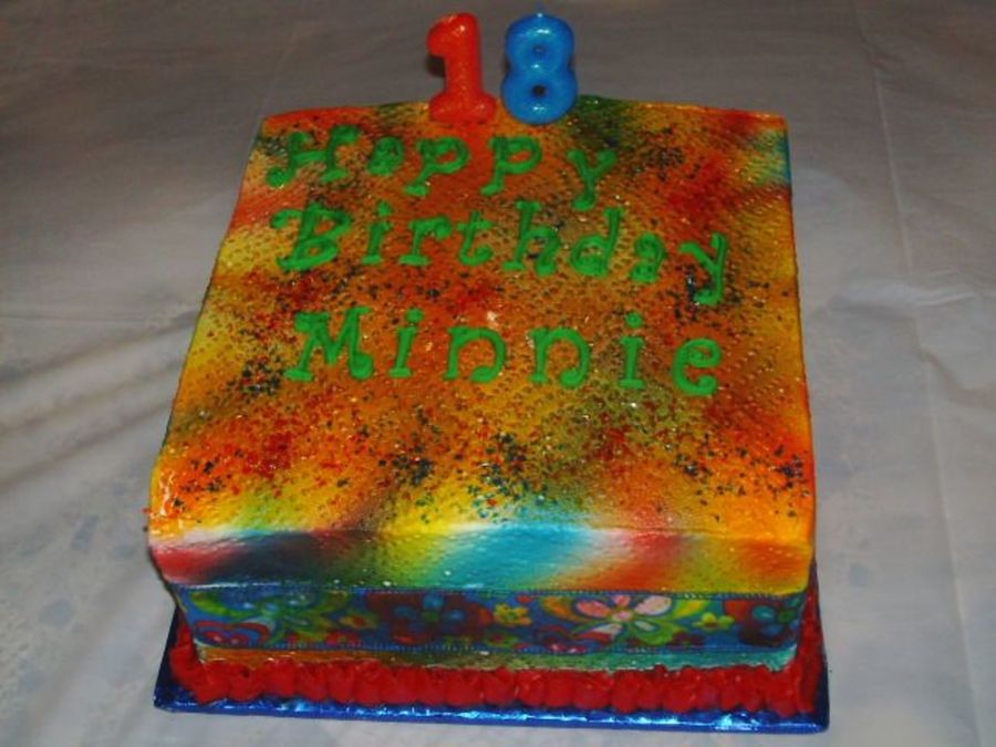9x9 square cake. BC icing, airbrushed to match the ribbon. This was for my daughter's 18th birthday. TFL!
