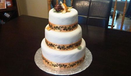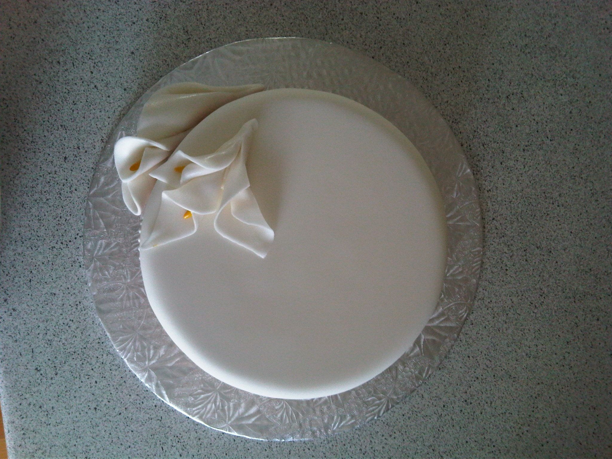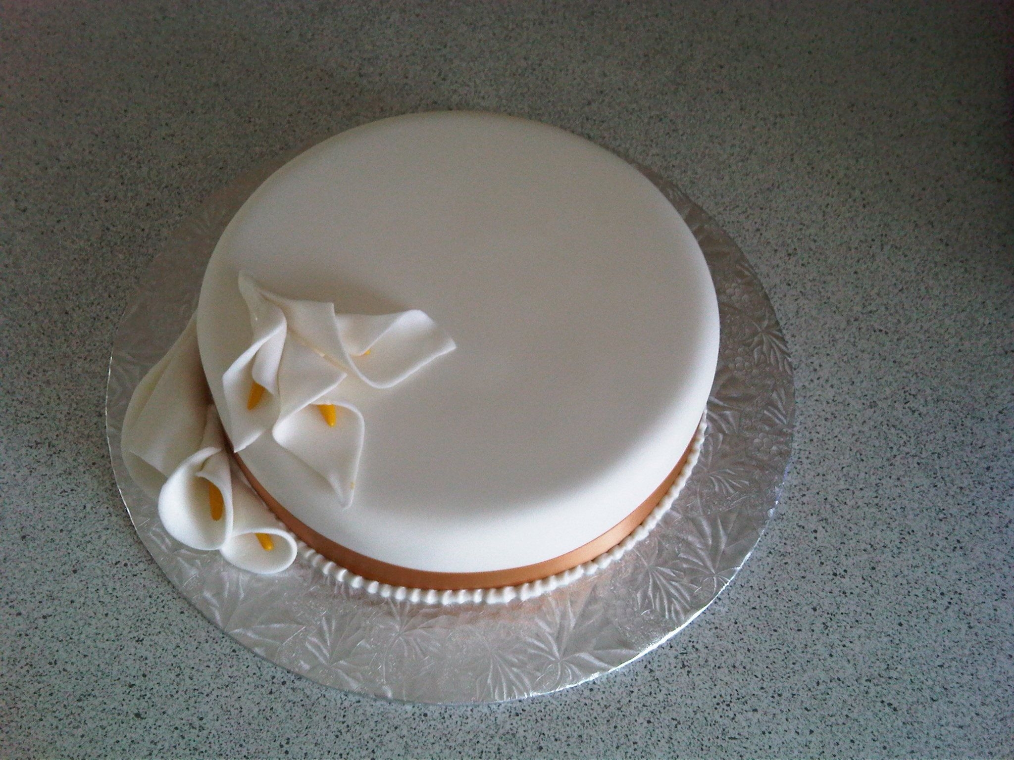 This is my first attempt at any type of cake, let alone a small wedding cake. Lilies are made out of fondant, base is basic yellow buttermilk pound cake.