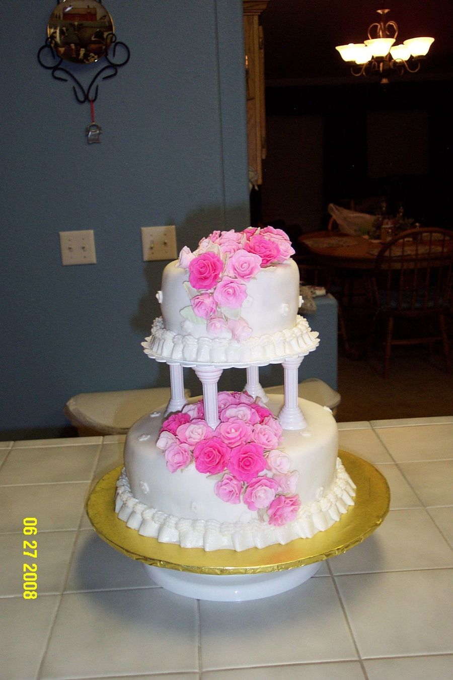 White with pink fondant roses