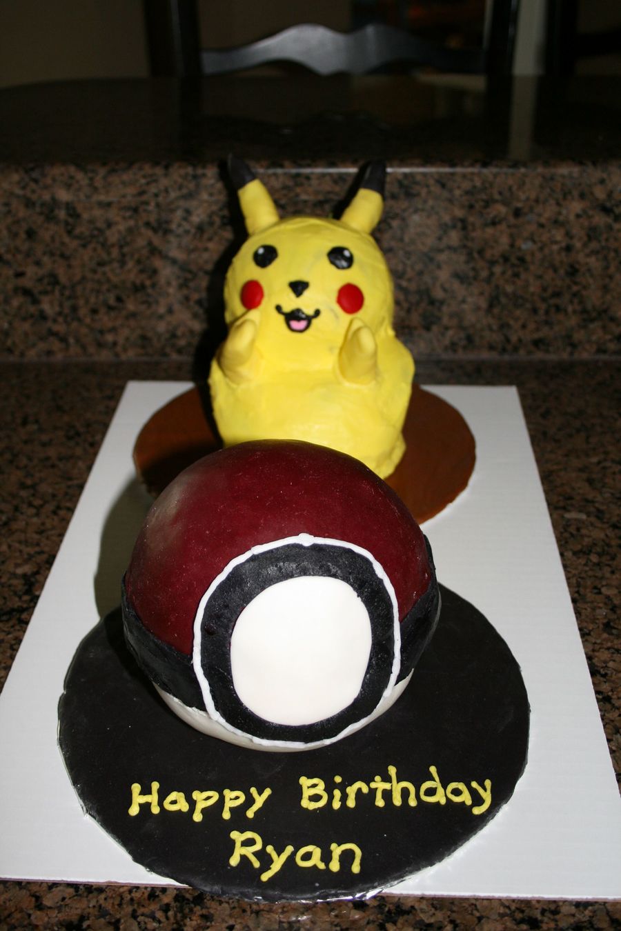 My husband and I made these cakes for a friend's son who was turning 5. We used the Wilton 3-D bear pan for Pichachu and the Pokemon ball was the Wilton Ball pan. The cakes are covered in BC with some fondant accents .