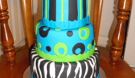Pink, Green, Blue, And Wine Wedding Cake