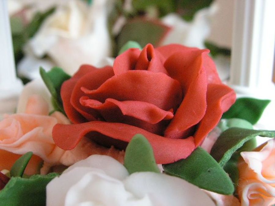 Close up of the roses on the Anniversary Cake