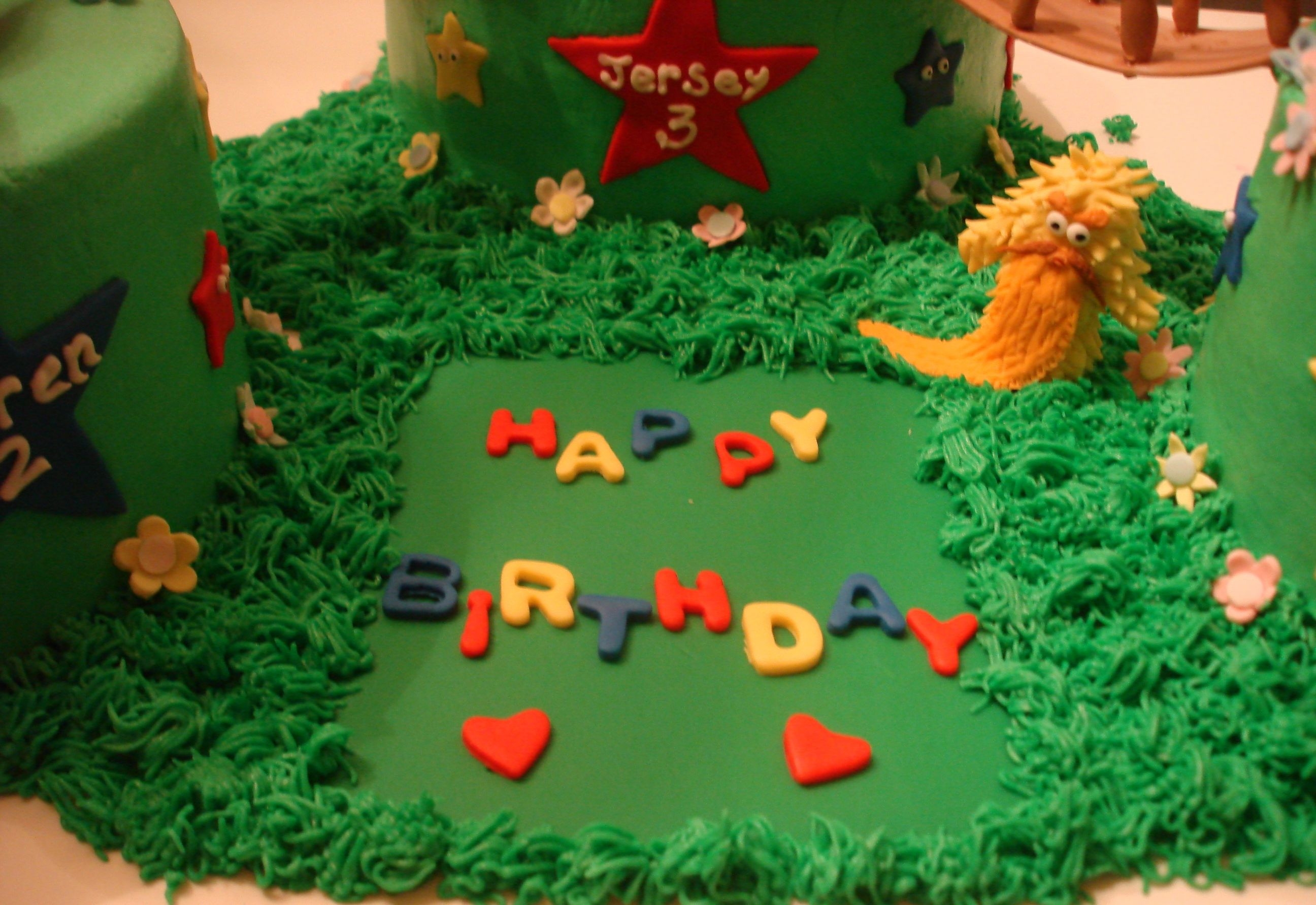 This was a super fun cake to make. It was made for a birthday party for a 3 year old and twin 2 year old.