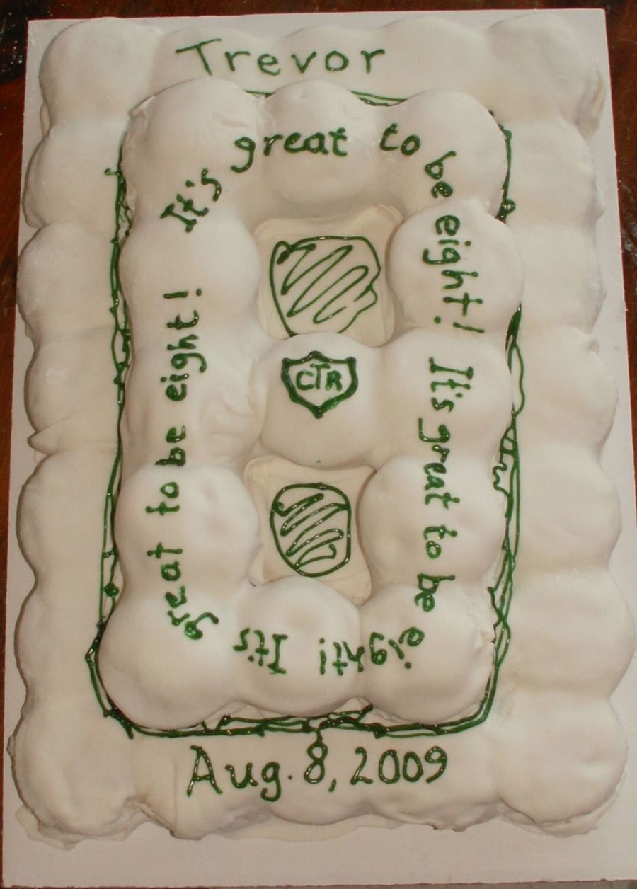 It started with the baking 48 cupcakes, 24 lemon and 24 chocolate. The cupcakes were assembled into cup cake "cake" for a friend's baptism with the number 8 being stacked two high. Lemon custard to filled the lemon cc's and "hostess-type" creme filled the chocolate cc's. After stuffing the cc's with their respective goops, I covered them with vanilla BC and white MMF. The writing is with green piping gel.