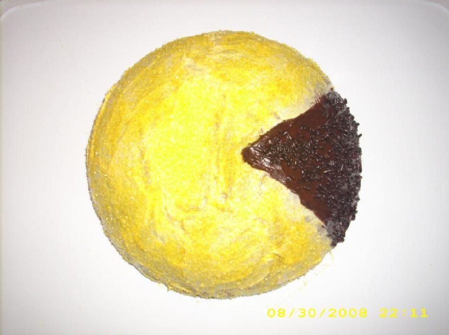 I made this cake for a friend who loves Pac-Man, created by using a soccer ball cake tin.
