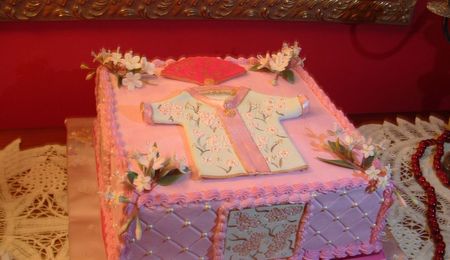 The spray is gumpaste hearts...thin gold wire. I used a wine bottle to bend the wires to get the "spray" effect. The wires were then tucked into a posey pick..