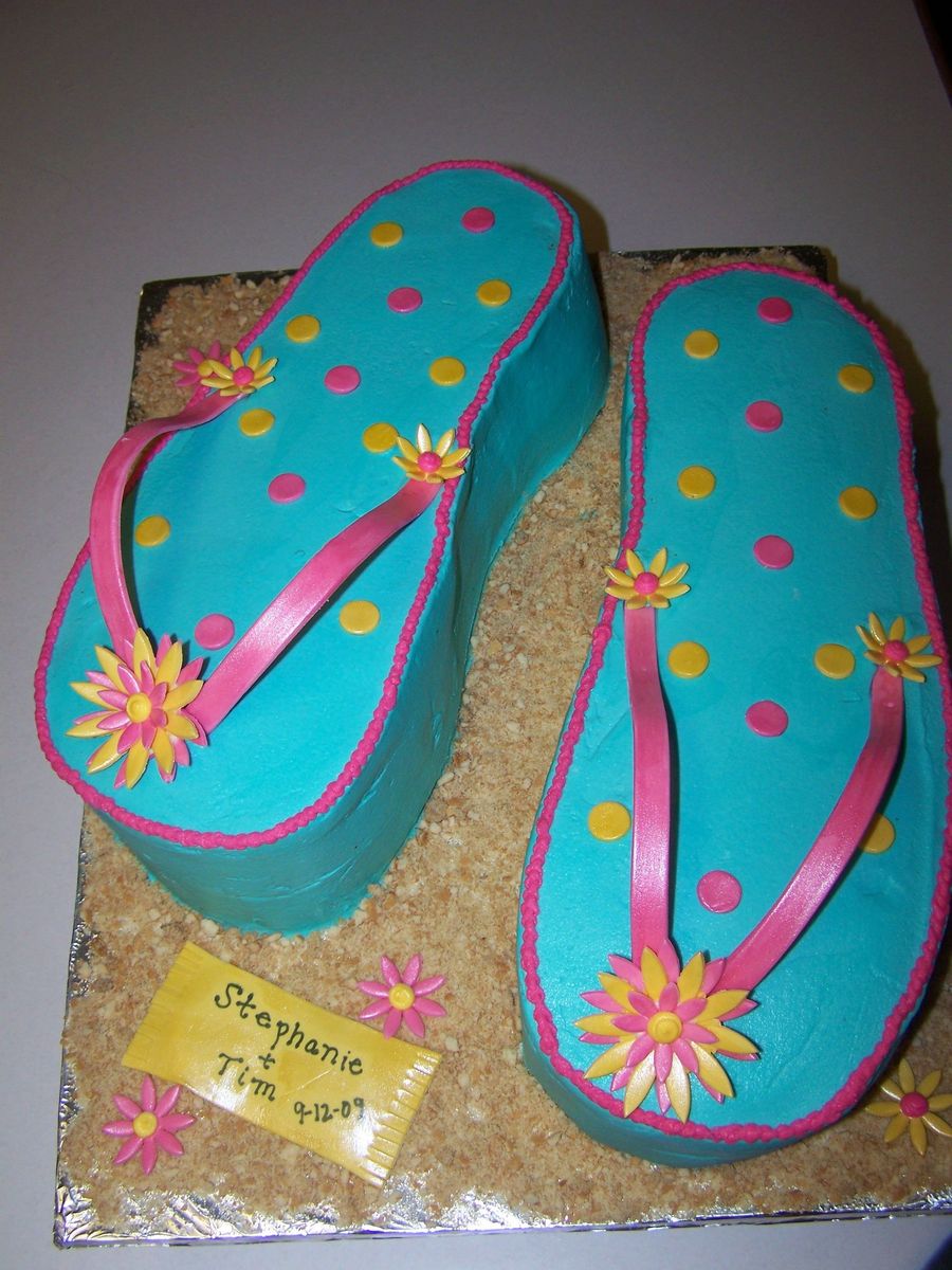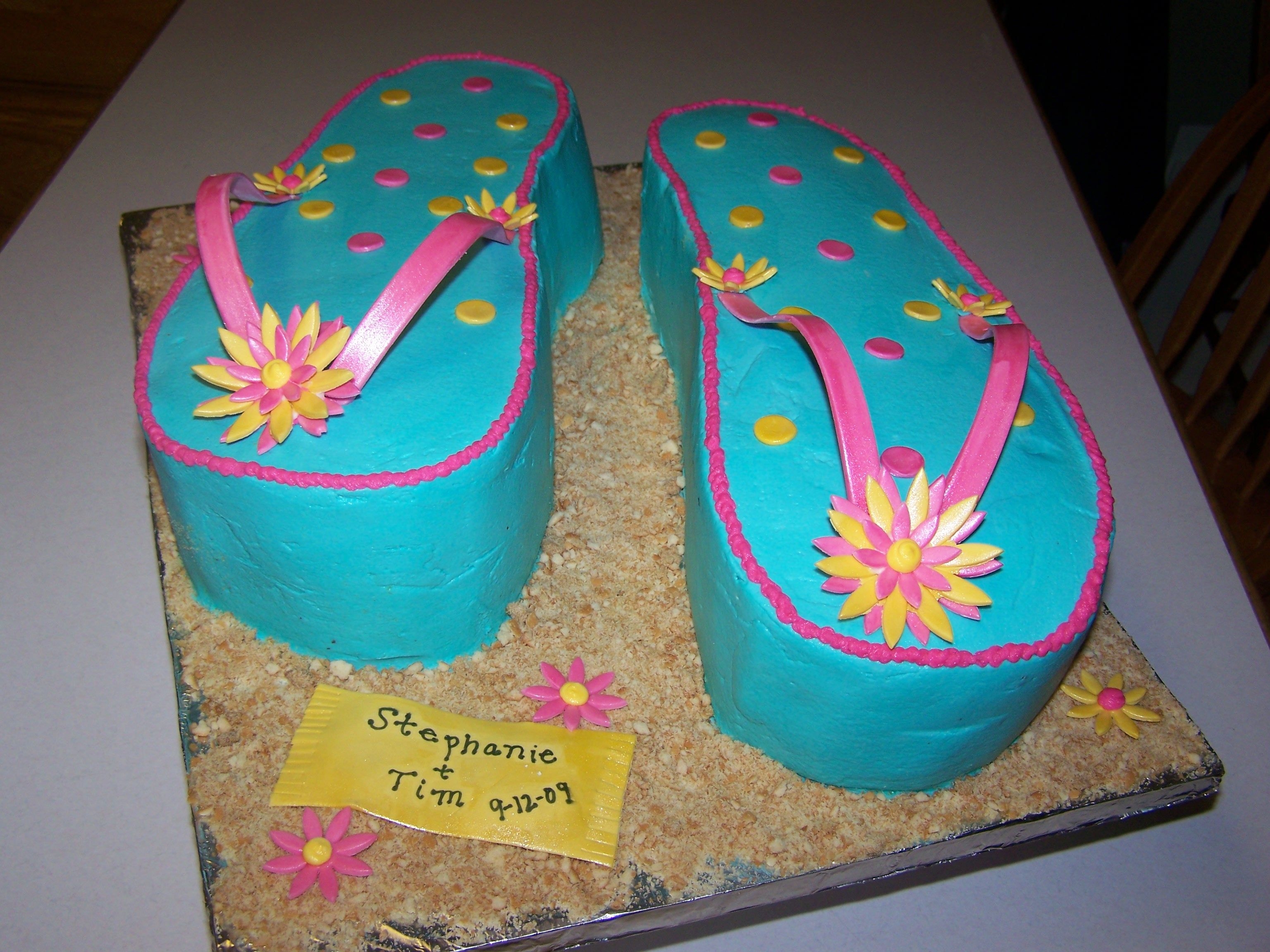 These were for a beach theme bridal shower. One was Lemon WASC cake, with raspberry filling. The other was Chocolate WASC cake, with chocolate cream filling, both had White Chocolate Almond Buttercream. All accents were fondant & gumpaste.