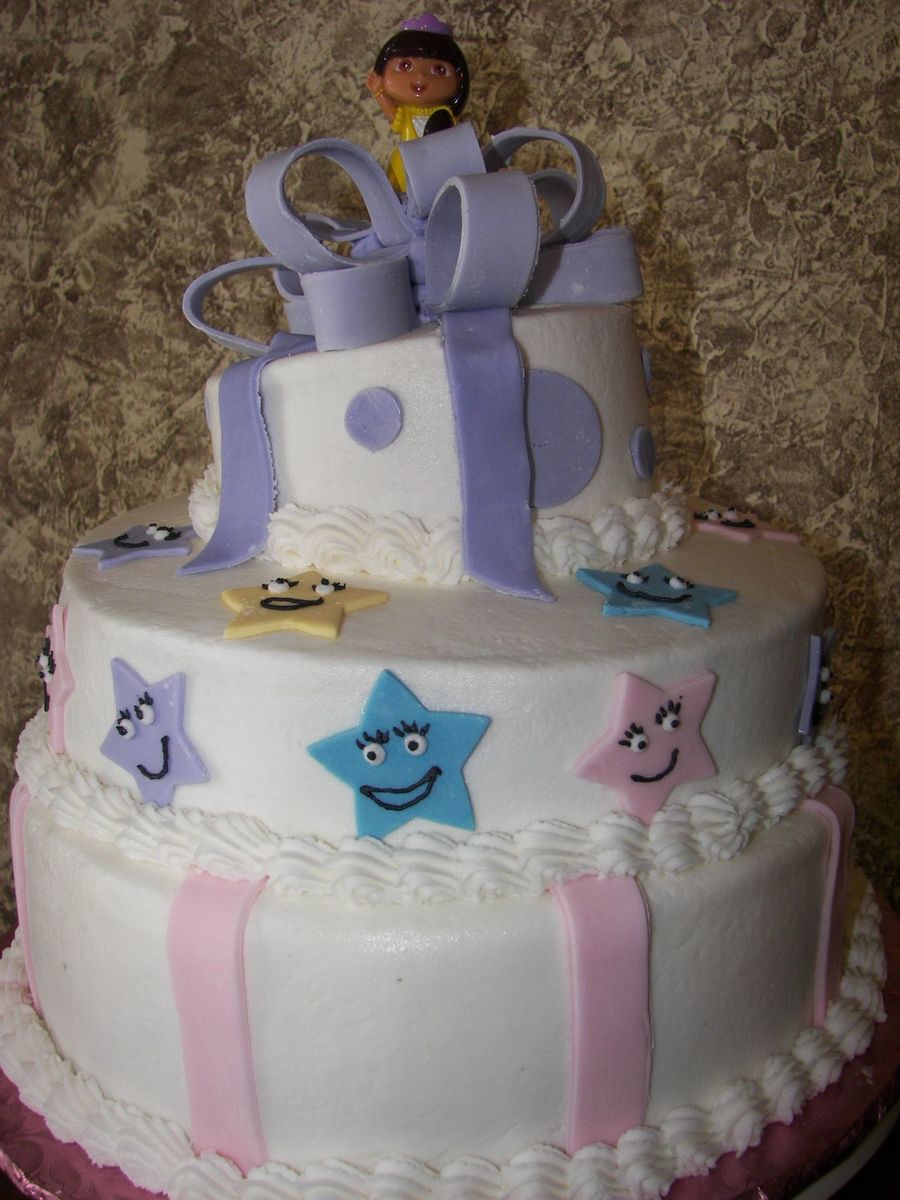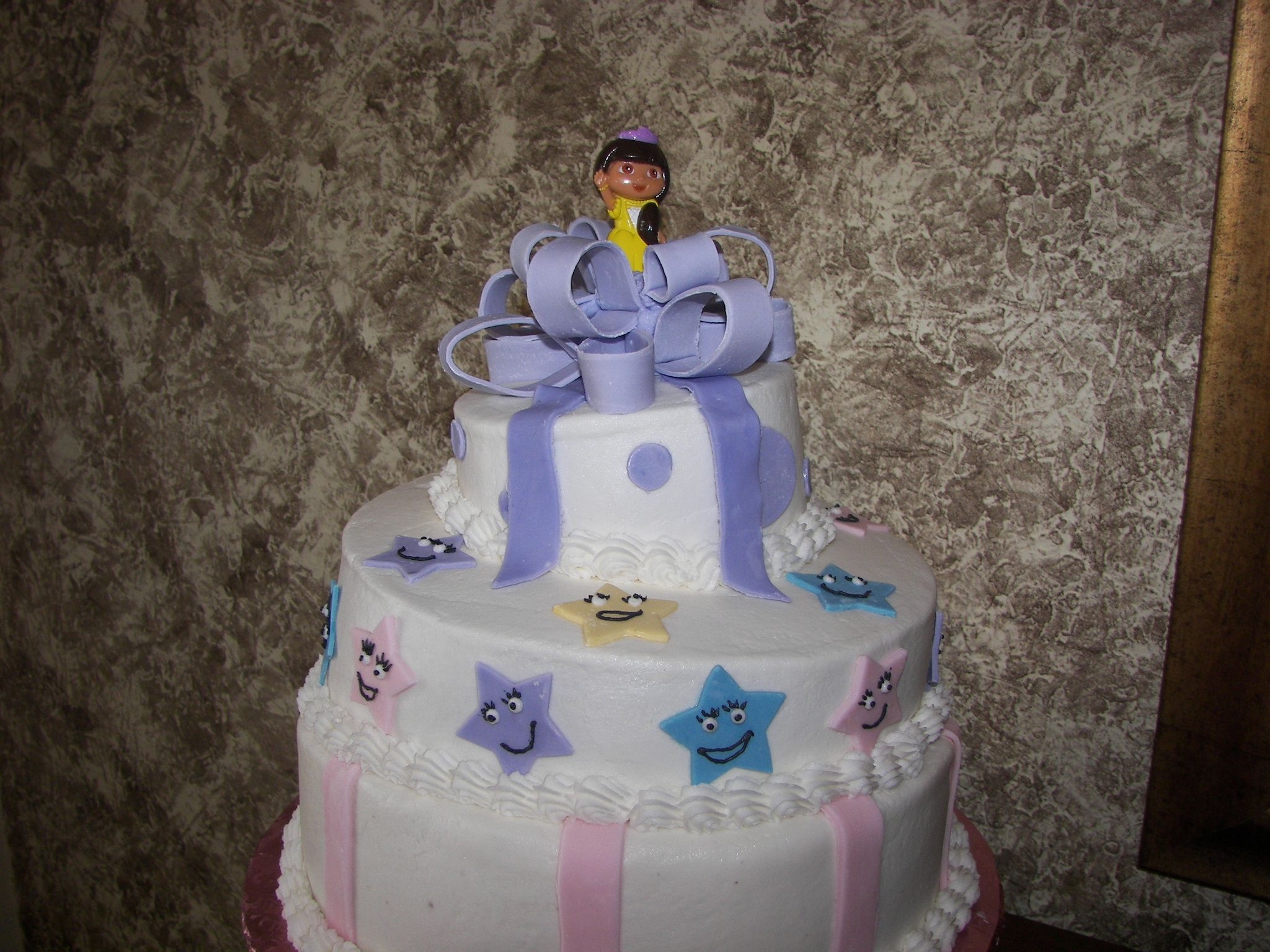 This was made for my friends little girls birthday. My first topsy turvy cake. Thought it turned out well. buttercream icing, fondant accents