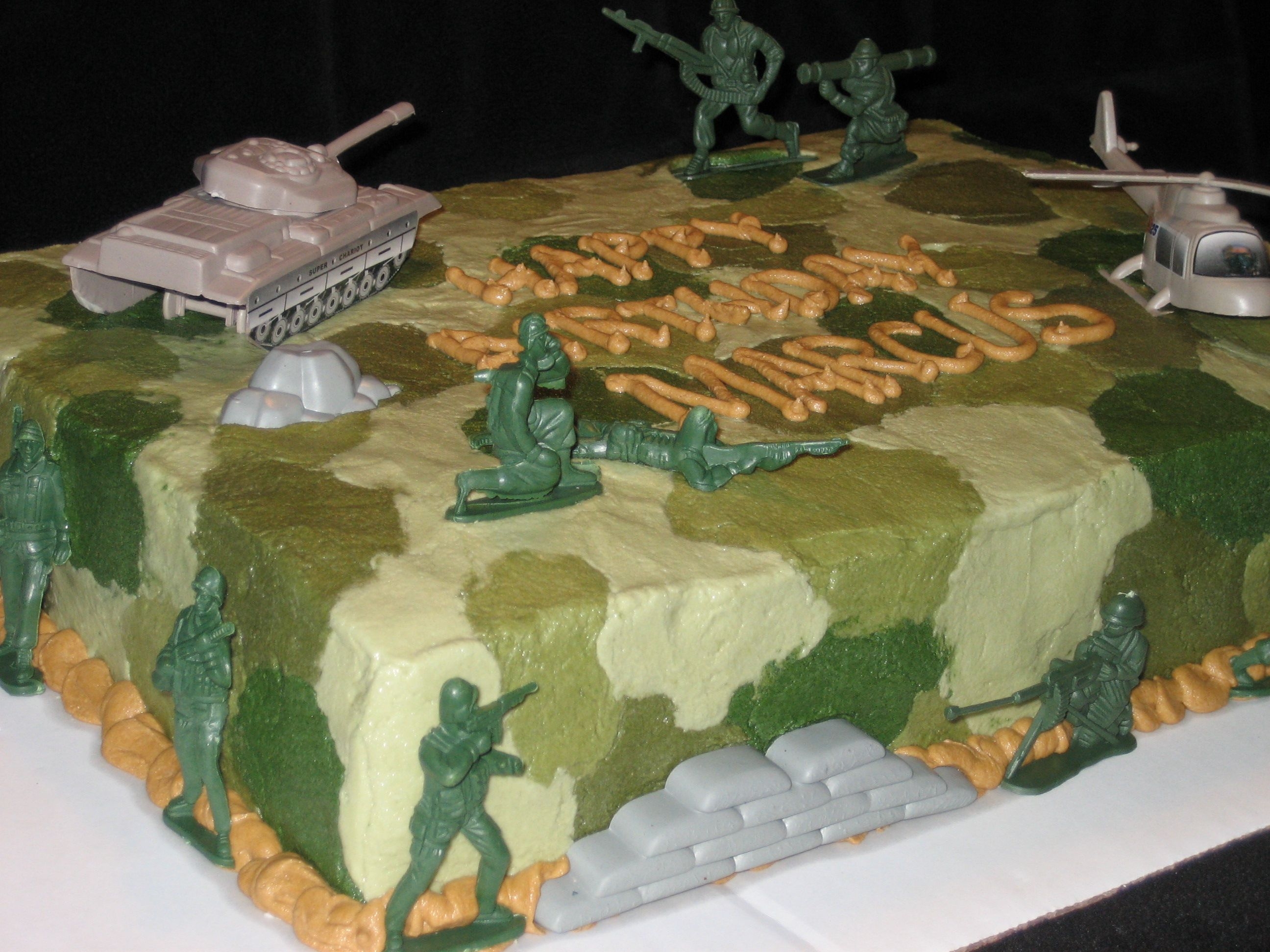 This little guy wanted an "army cake" First attempt at camouflage...that was interesting!