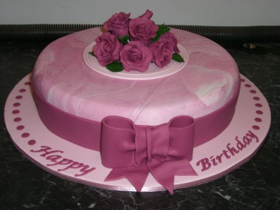 Fondant covered cake with gumpaste roses.
