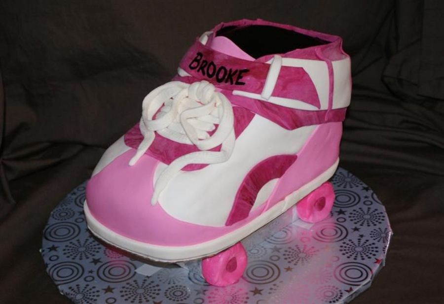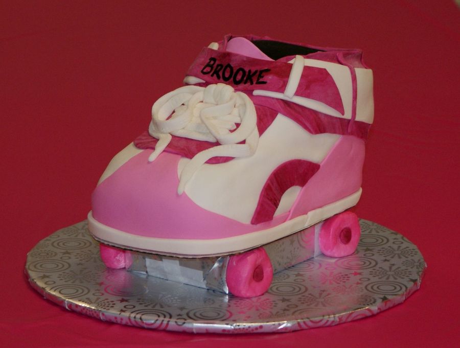 This cake was a 4 layer cake carved into a roller skate for my daughters 8th birthday skating party. She is a huge fan of pink. =)