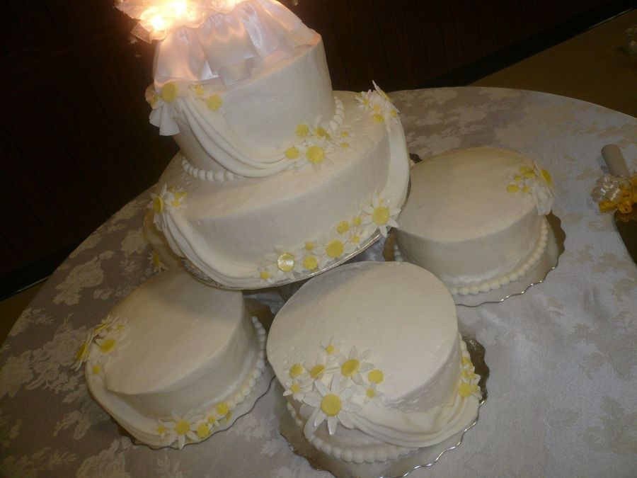 6 6" vanilla and 10" chocolate (this cake turned out to be a salvageable disaster-had to peel fondant off and re-ice them all within 4 hours of the reception)