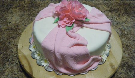 This is my first tier cake which was also my worst nightmare, specially with the bow. First the weather didn't help, humidity was extremely high so the gumpaste was a disaster, so I ended up using a regular bow.