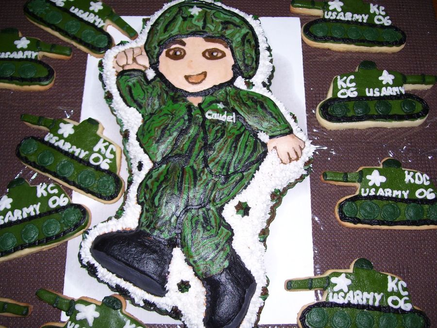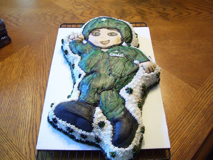 WASC with Vanilla Buttercream, made for Grandsons # 6 Birthday. He wanted an all Army theme Party. Not alot of time to do a carved cake so went with the next best thing, I used the GO Diego GO pan. It didn't turn out to bad & he & the party goers loved it. TFL