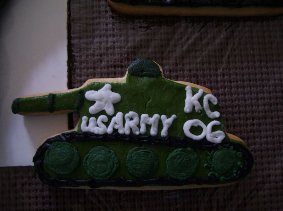 NFSC with rolled buttercream & buttercream accents. Made for grandsons 6th Birthday. These turned out to be huge cookies. I rooled the dough to 3/8 thick to keep the gun barrel from breaking off during the decorating process. Everyone loved them.