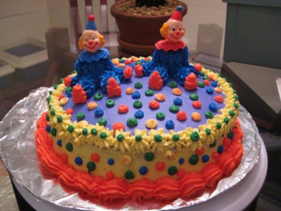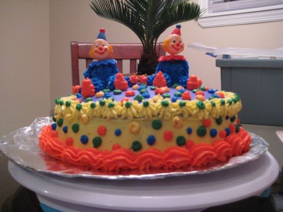 This is the second cake I made for course 1 class three. I think clowns are scary but I did it anyway! I will never make a double batch of icing again ! Everything came out to stiff so I tried to water it down! I need practice on my scallops, any advice ?