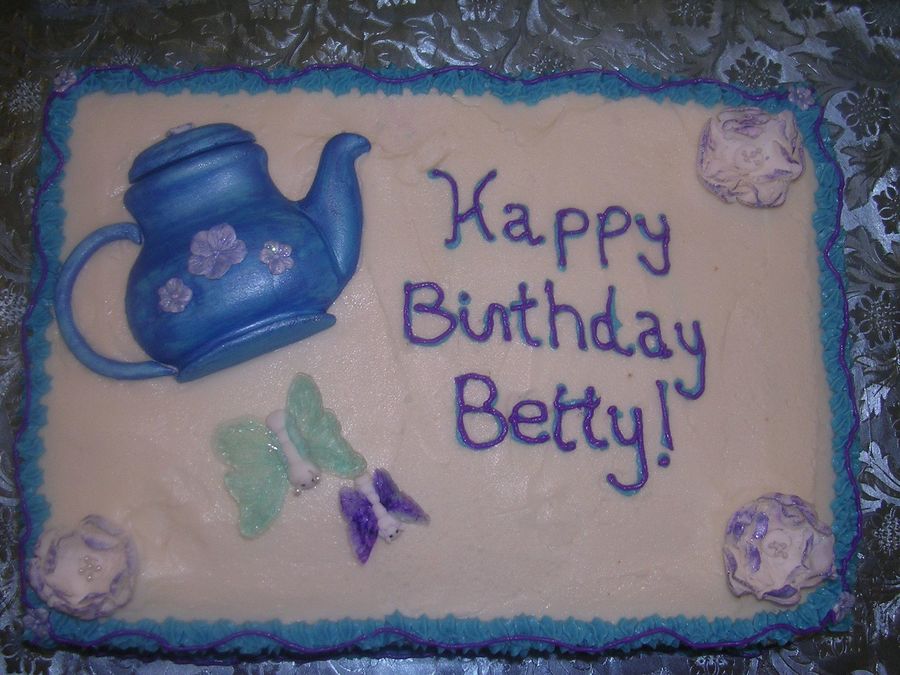 Yellow Cake, Buttercream, with gumpaste accents and gelatin butterflies. For my Aunt who turned 90.