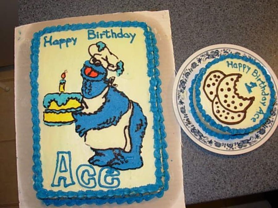 I made this for my Son's first birthday. Its all butter cream and cookie monster is a FBCT. The smash cake is also butter cream.