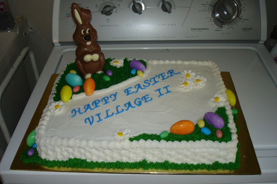 Buttercream lattice with chocolate rabbit, jelly beans, and candy eggs.