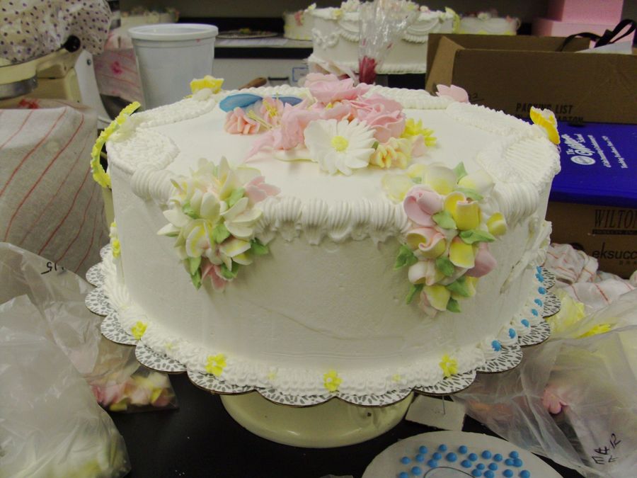 This cake is one of our final projects for the two week Master course at The Wilton School in Darien, Illinois. This cake shows everything we were taught in that two week period.