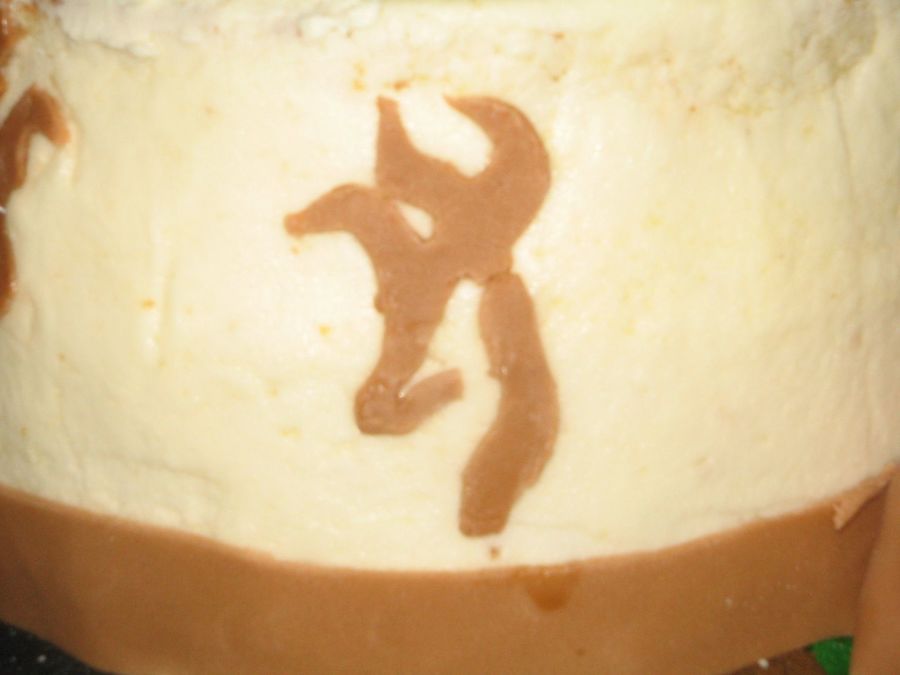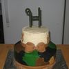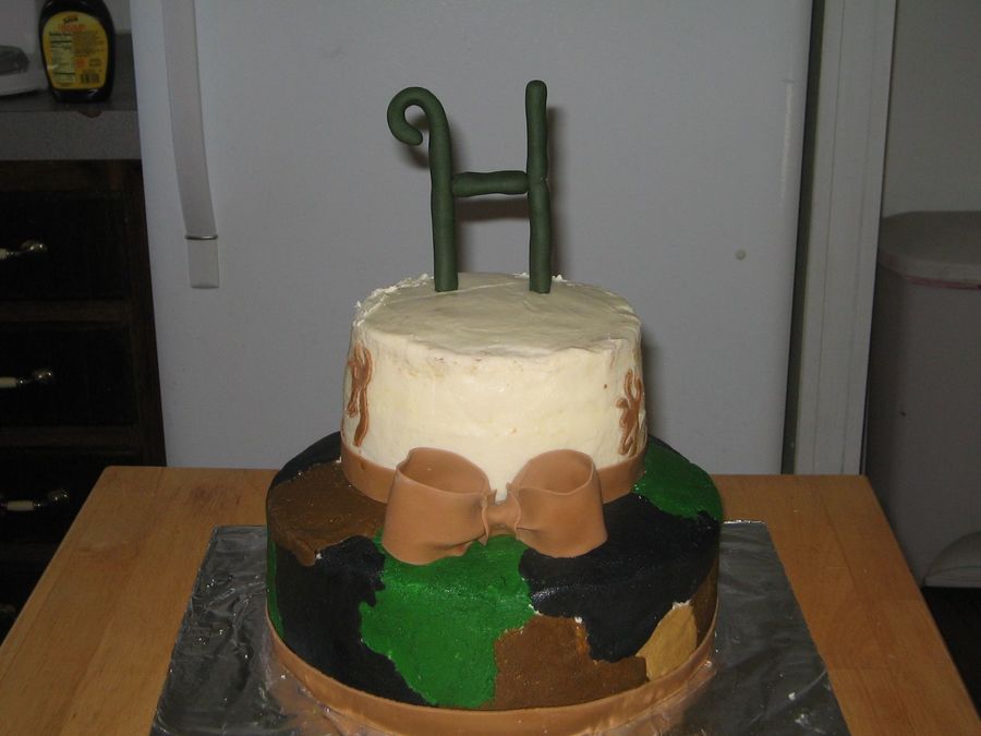 This was his actual cake. 8" bottom 6" top. Buttercream camo. Fondant browning symbols and "H"