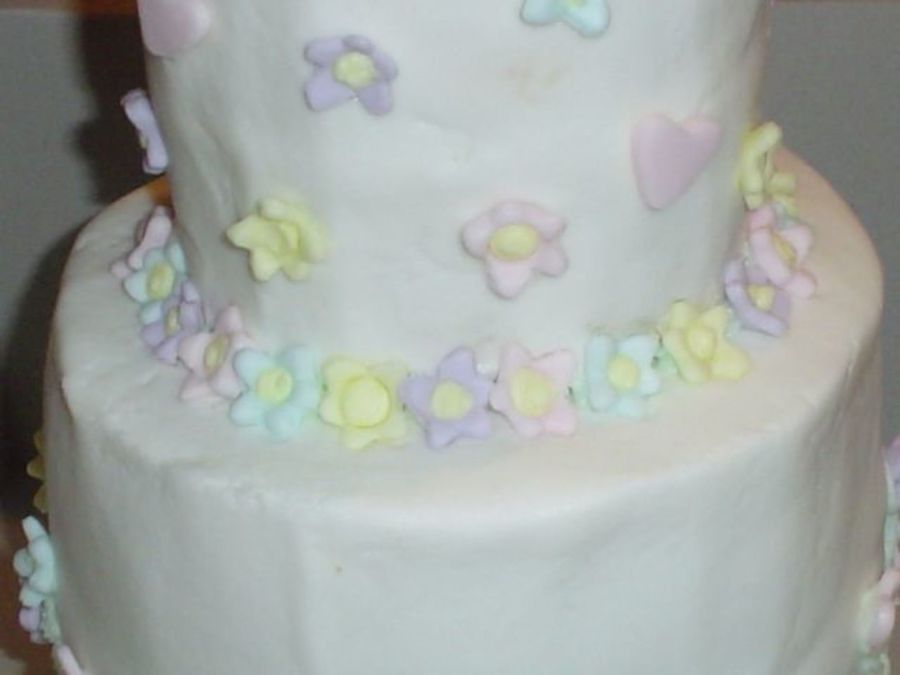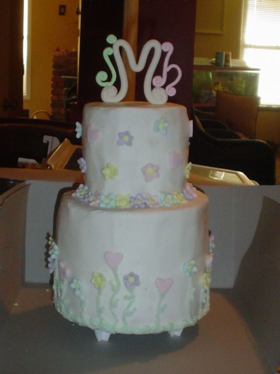 This is for a couple who are so fun! They are very romantic and lov flowers so I made flowers and hearts growing out of the cake. The topper is made of clay.