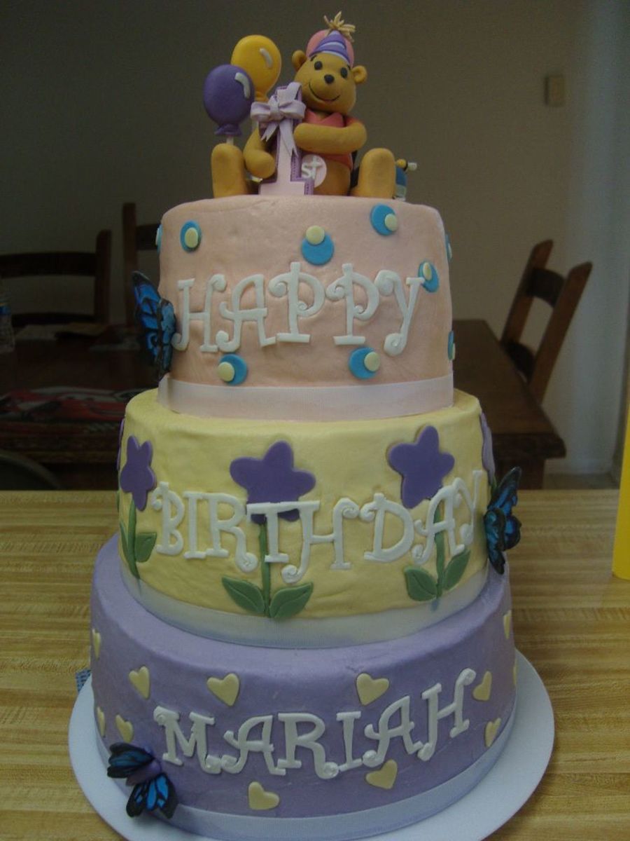 This was my first three tier cake, and I had a heck of a lot of fun working on it! Did run into one big problem - ended up leaning to the back! (Thanks to all who helped me with that one.) Oh, well! Niece loved it any ways! :) It was a 10, 8, 6. White cake and strawberry filling. Buttercream icing and fondant/gumpaste figures and cut outs.
