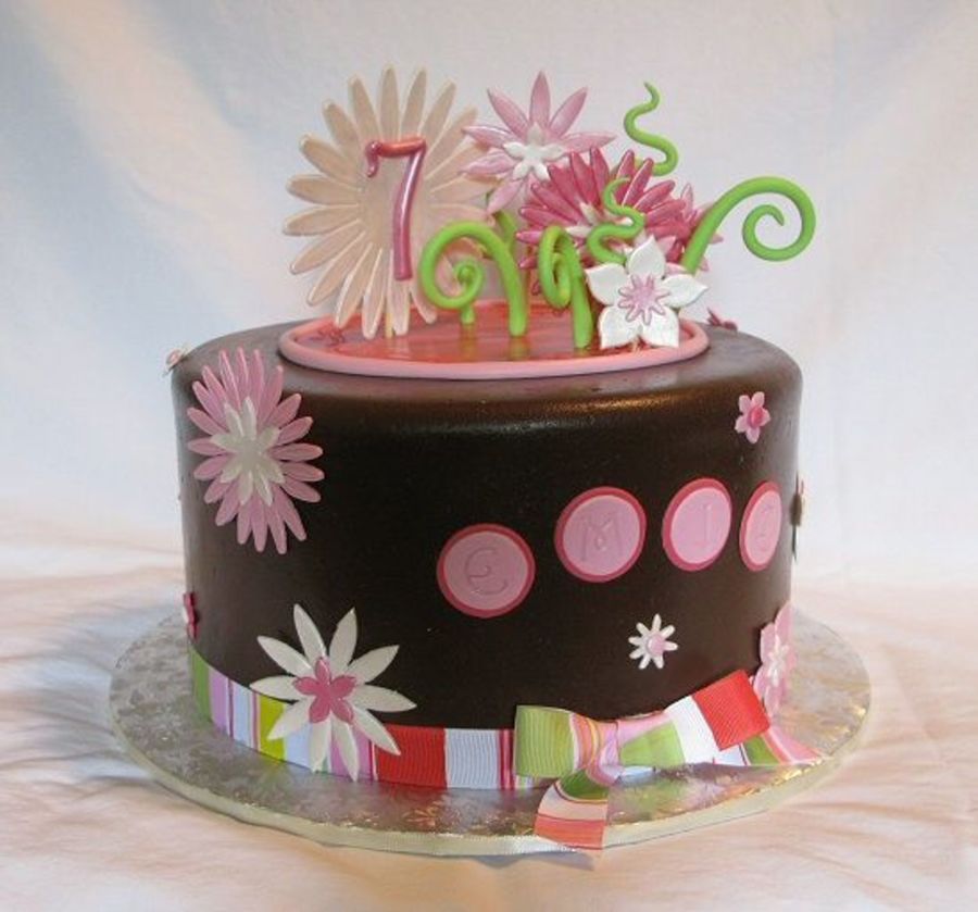9" round covered with chocolate fondant and gumpaste flowers. Thanks for looking.