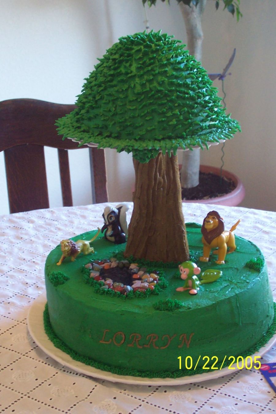 This was a cake that I made for my daughter's 3rd birthday. Her only requirement was that it had to have jungle animals on it. It is Devil's Food cake with caramel filling with buttercream icing.