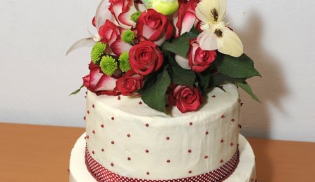 White cake with lemon and raspberry filling. Frosting is crisco buttercream.