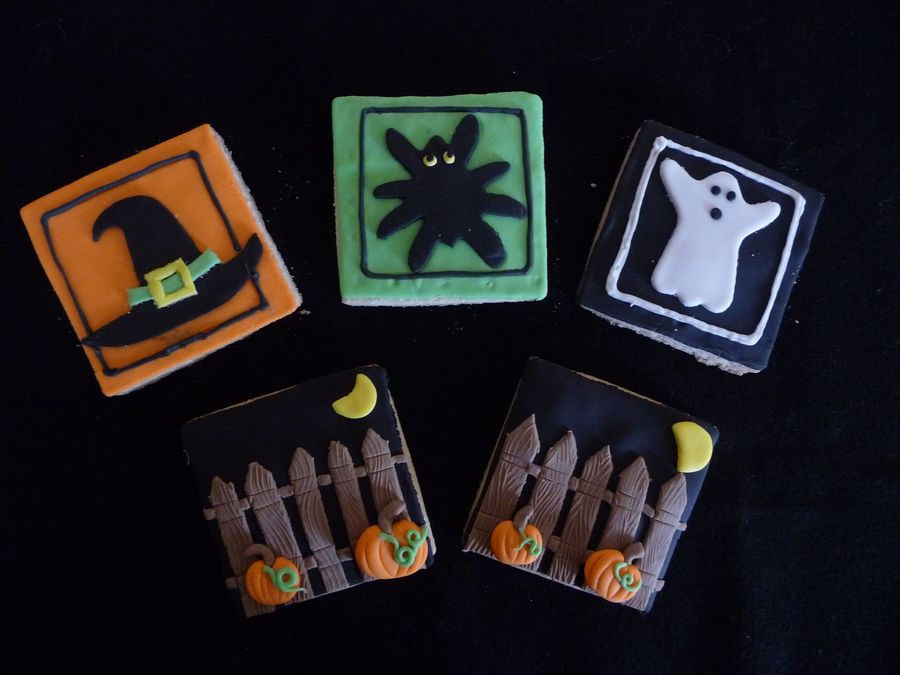 I had some Halloween cookie ideas floating around in my head and had t try them, even though it's a little early for the holiday. They are NFSC with fondant.