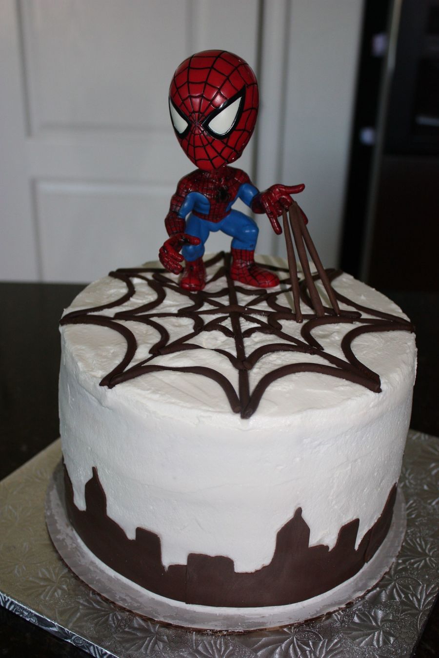 Spiderman bobblehead on top of satin ice web and satin ice city skyline. Decorations were done on top of BC.
